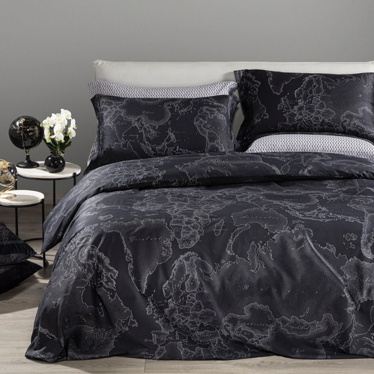 Completo Copripiumino Geo Night in Raso di Puro Cotone