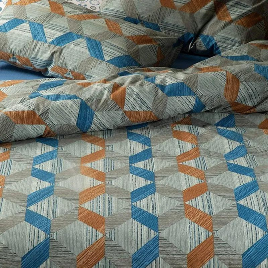 Completo Copripiumino Geo Chain in Raso di Puro Cotone