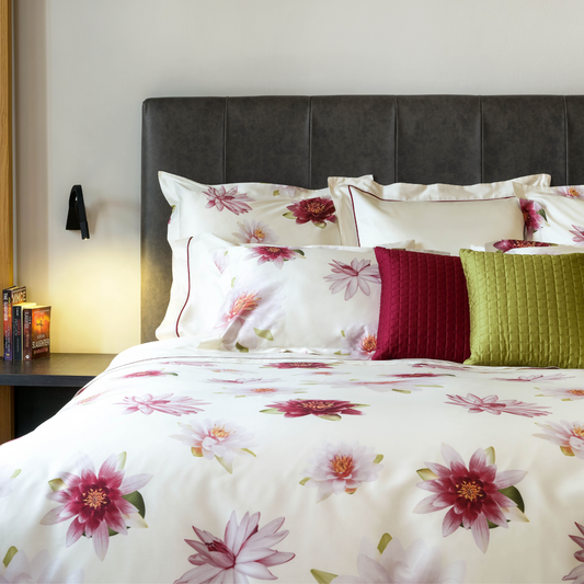 Parure copripiumino Fior di Loto 100% raso di cotone stampato