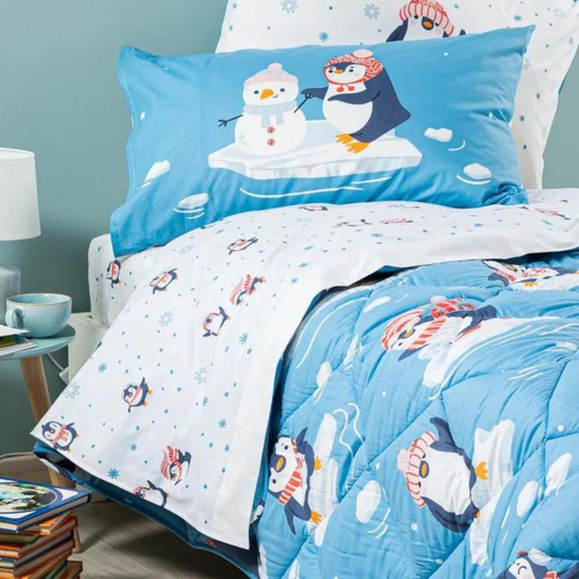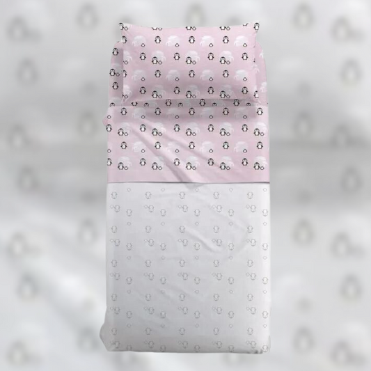 Completo Lenzuola Pinguini 100% Cotone Kids