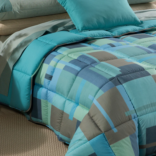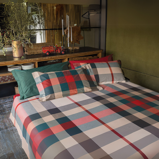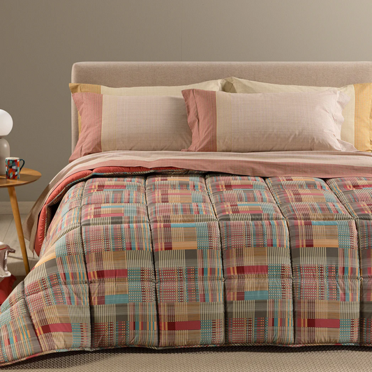 Trapunta Geo Tartan In Raso Di Puro Cotone