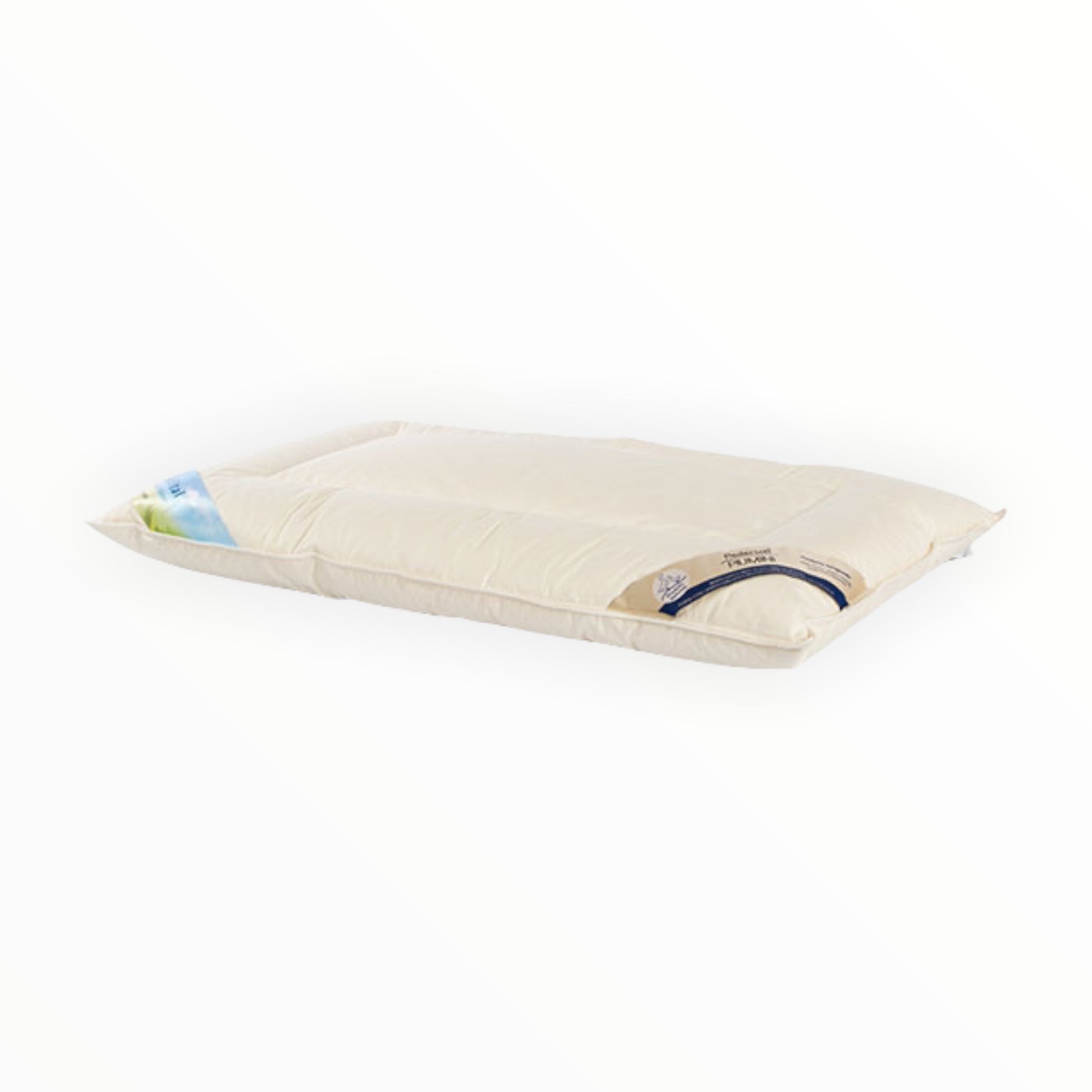 TESSUTO: puro cotone makò da 86 gr./mq con trattamento SanProCare®, con imbottitura in piumino bianco originale di oca della Putza al 95%