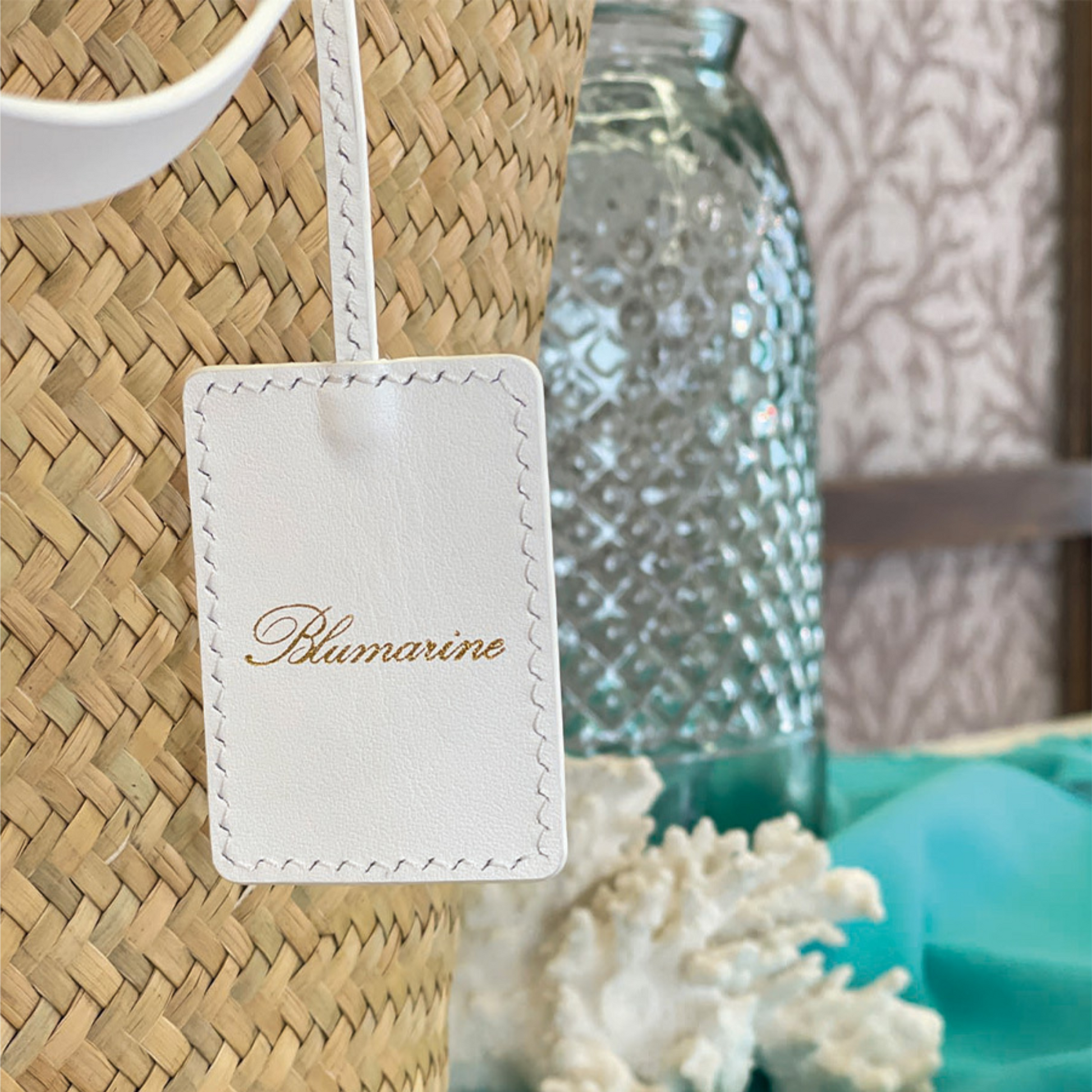 Realizzata in materiale vegetale intrecciato (lepironia articulata) e rifinita con profili in pelle di vitello, unisce artigianalità e stile senza tempo. Il tag removibile con logo Blumarine stampato aggiunge un dettaglio distintivo e raffinato.
