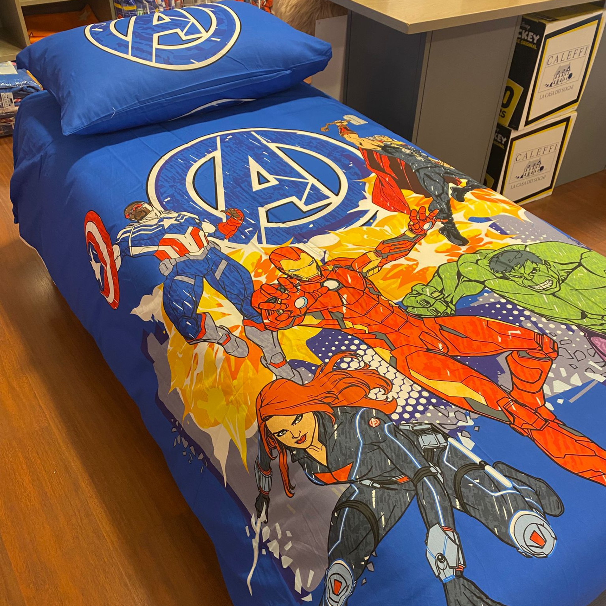 Il completo copripiumino Avengers Fire Marvel, disponibile da Pedersoli Casa, è la scelta ideale per gli appassionati dei supereroi Marvel, perfetto per dare carattere e dinamismo alla cameretta.