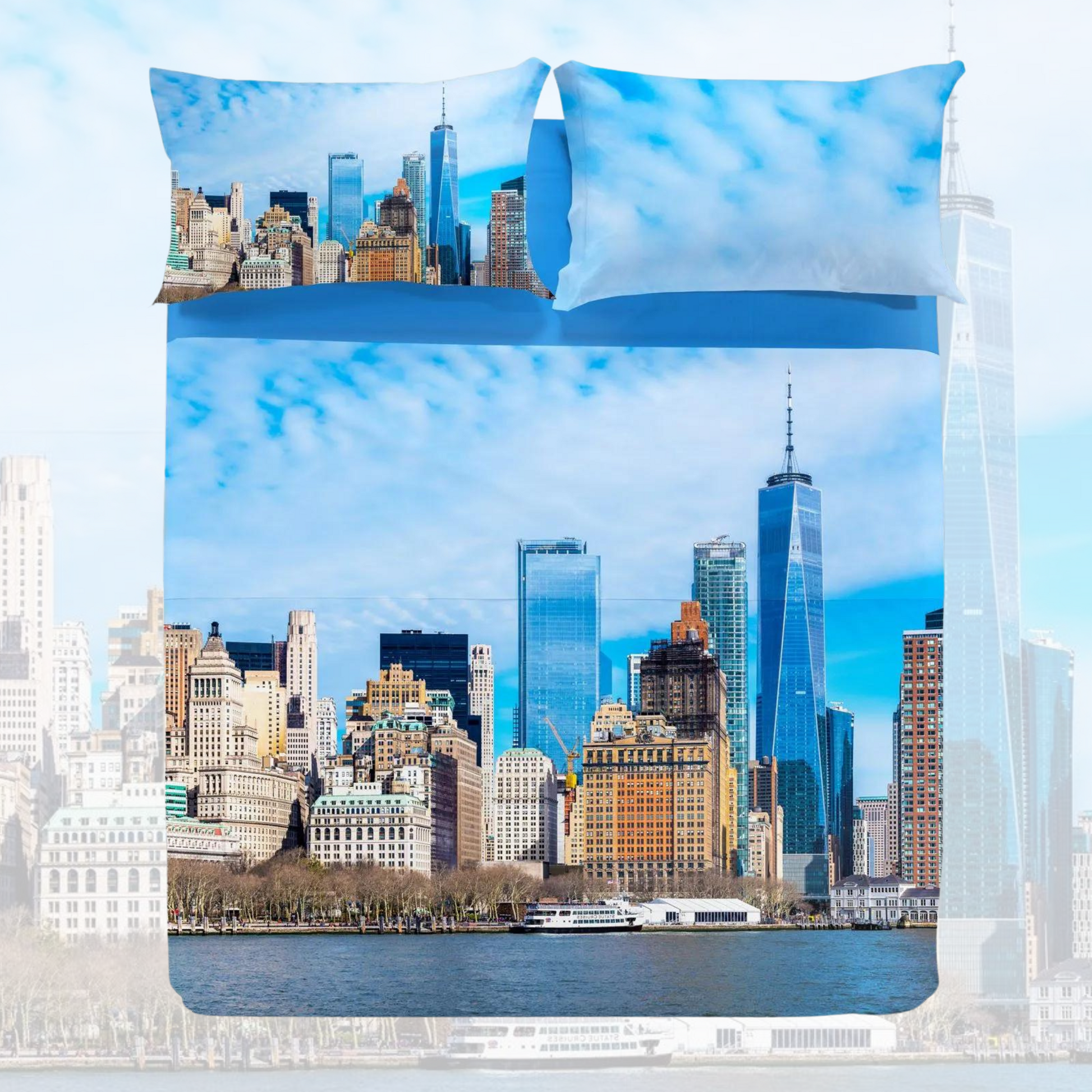 - Lenzuola Copriletto Freedom Tower Matrimoniale in Cotone