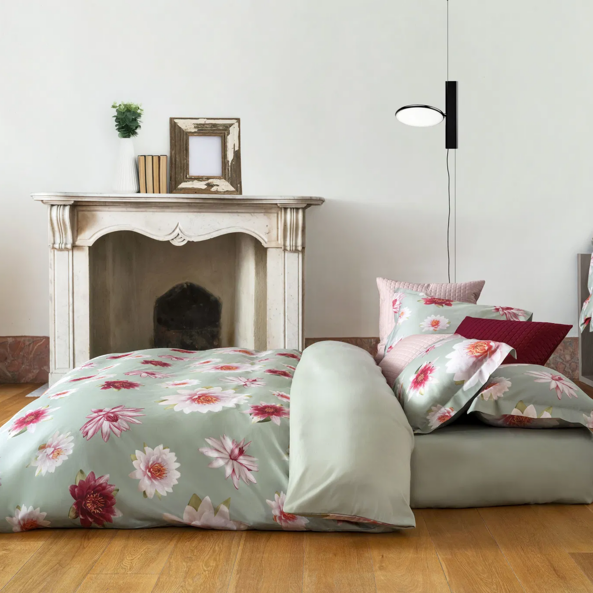 Un antico mito ispira la delicatezza del completo letto Fior di Loto: una ninfa trasformata in fiore acquatico per amore del Sole. Le sfumature delicate del fiore di loto sembrano danzare sul tessuto, creando un effetto leggero e avvolgente su pregiato raso di cotone 300 TC, simbolo di raffinatezza e qualità.