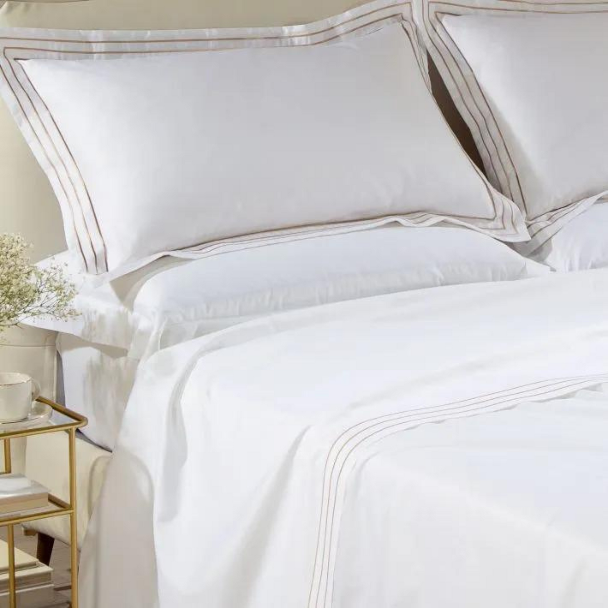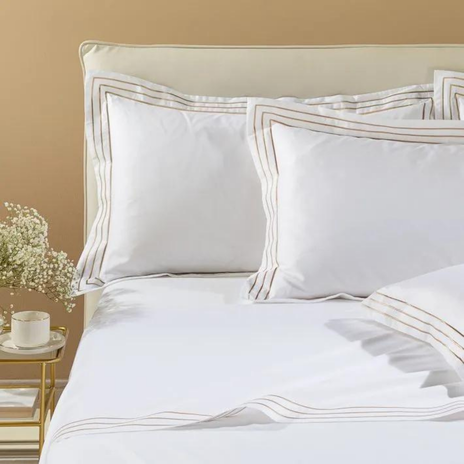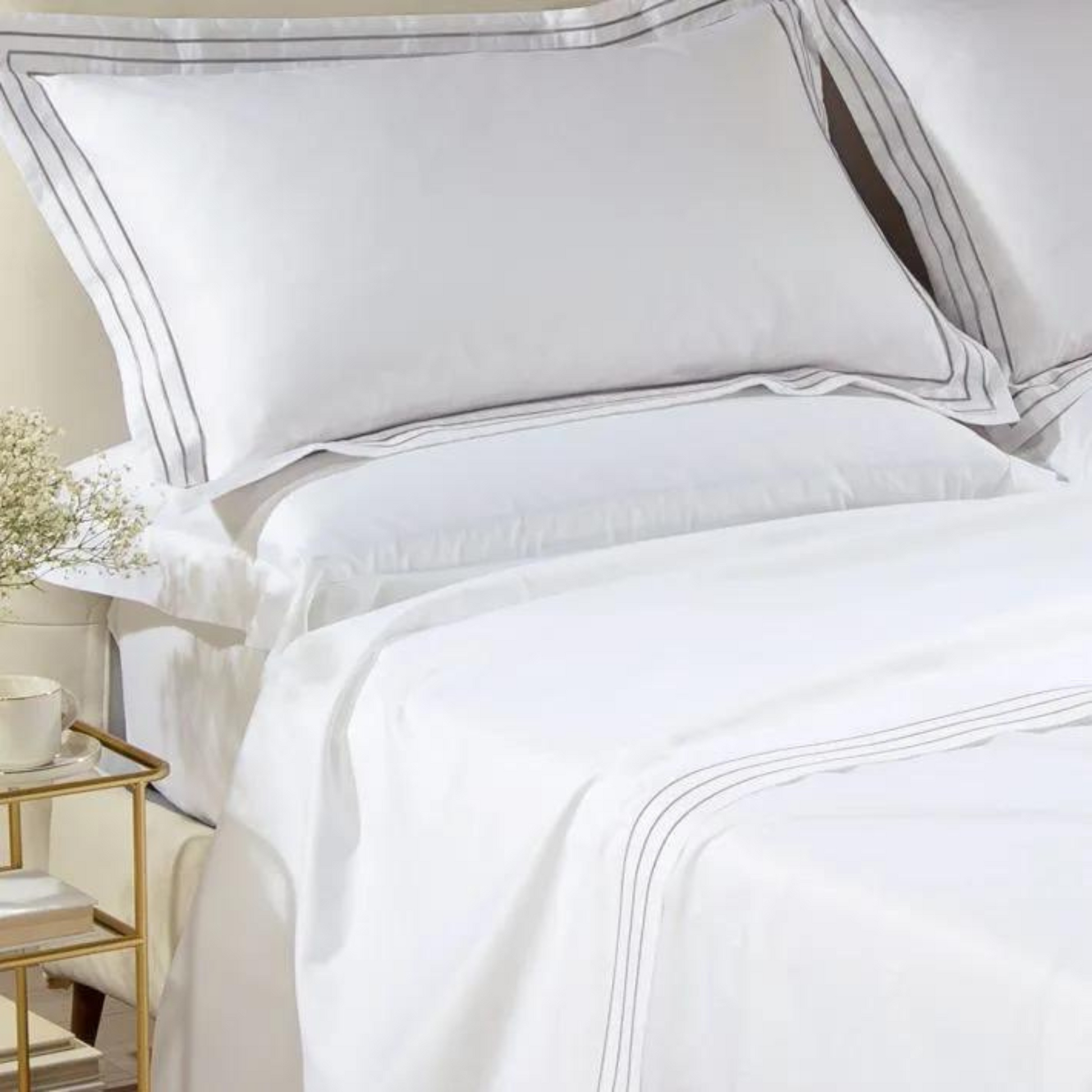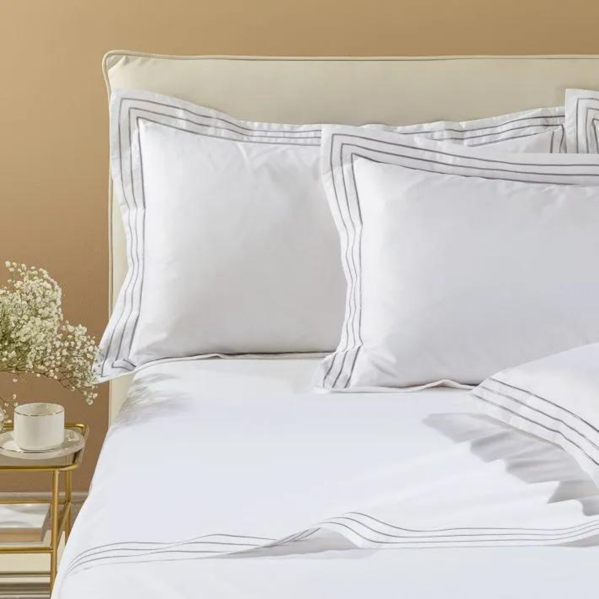 Il completo Lenzuola Melodie in Raso di cotone rivestirà il tuo letto con morbidezza ed estremo gusto, creando lo stile unico del tuo letto..