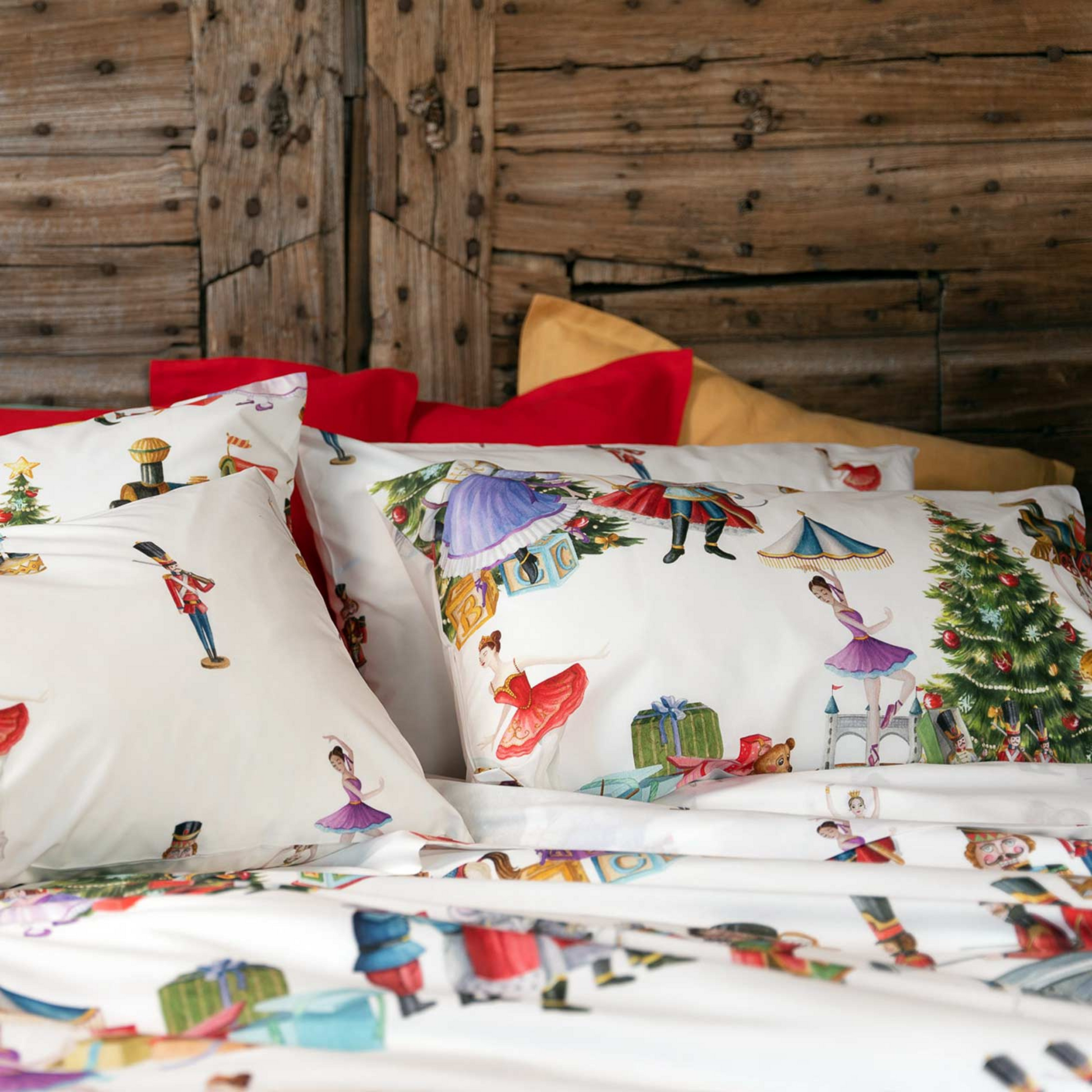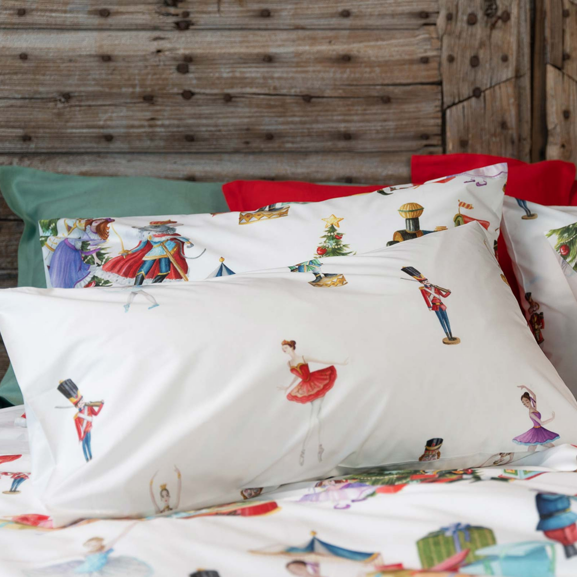 Immergiti nel lusso e nell'eleganza con il nostro completo lenzuola matrimoniale in percalle di cotone, impreziosito da un incantevole disegno schiaccianoci. Realizzato con materiali di alta qualità, il nostro lenzuolo matrimoniale offre un comfort eccezionale e una sensazione di morbidezza che avvolge dolcemente il tuo corpo durante il sonno.