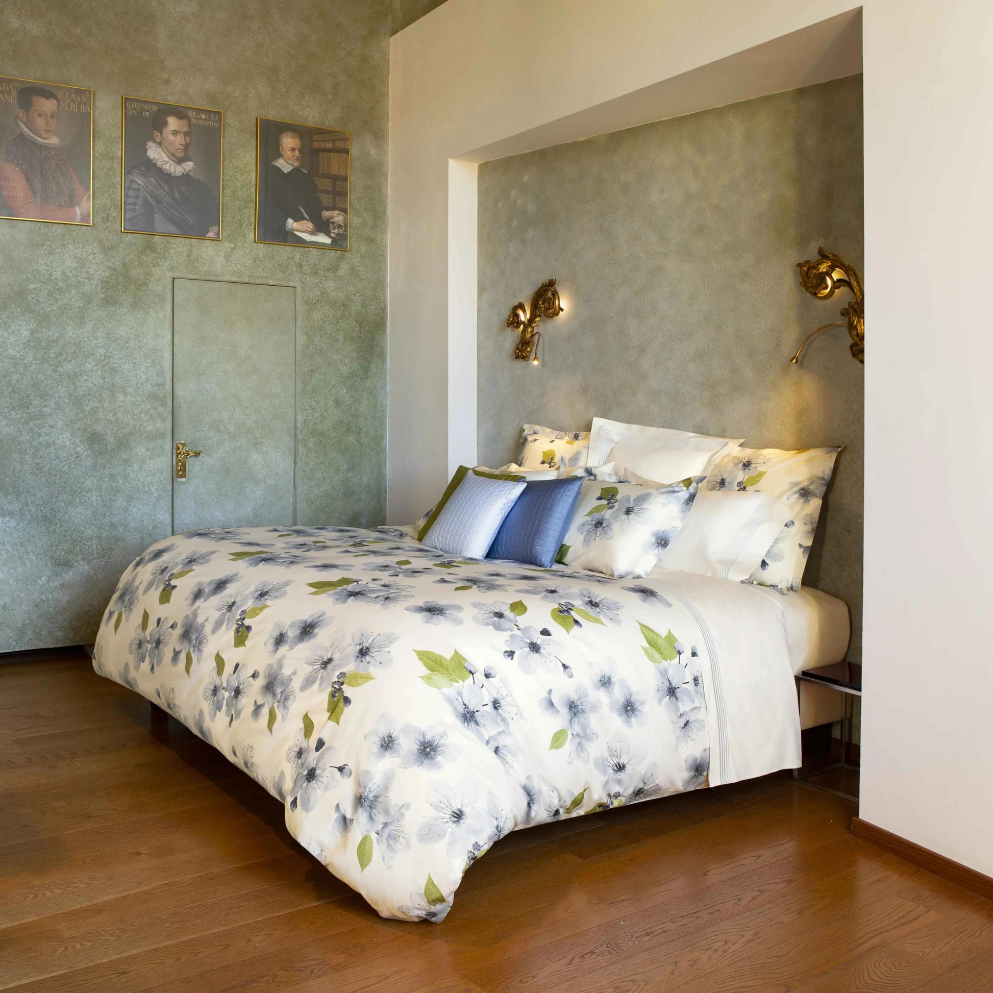 Il completo lenzuola Verona 100% raso 300TC del rinomato marchio Signoria di Firenze incarna l'eleganza e la raffinatezza. Ispirato al fiore di ciliegio, simbolo di prosperità e rinascita nella cultura giapponese, questo design dona alla stanza un senso di freschezza e leggerezza, evocando la vivace atmosfera della primavera.