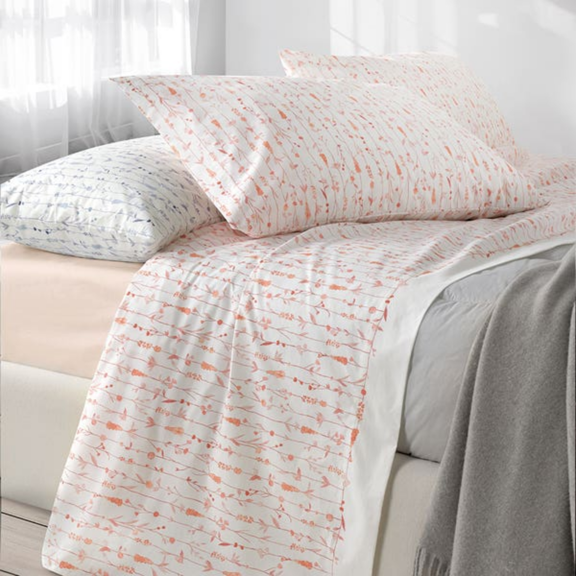 Il motivo stampato dona un tocco di classe alla camera, perfetto da coordinare con i pregiati plaid e le coperte Somma 1867, per una biancheria che arricchisce l’ambiente con eleganza e calore.