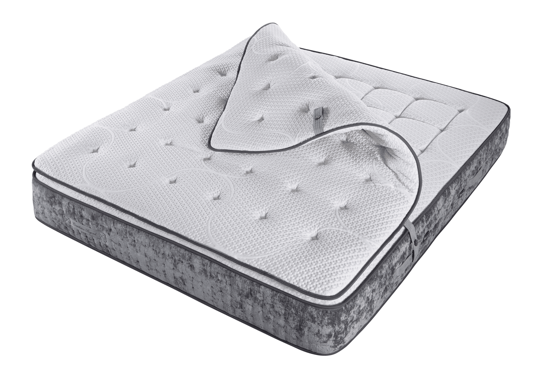 L’iconica trapuntatura, sapientemente ottenuta con ricamo tradizionale, e la lavorazione a capitonné invisibile, ancor oggi realizzata a mano con maestria artigianale e antica conoscenza, esaltano la sofficità delle imbottiture che, grazie alla molteplicità degli strati, permettono di provare un esclusivo effetto di benessere riservato a pochi. Laddove i migliori materiali e le fibre più ricercate si uniscono, trovano luogo le imbottiture più performanti. La fibra di carbonio, la microfibra Soft Touch contenente zeoliti a rilascio di ioni d’argento ed il fiocco multicavo ad alta resilienza rendono questo straordinario materasso unico ed inimitabile in grado di soddisfare anche il sonno dei più esigenti.