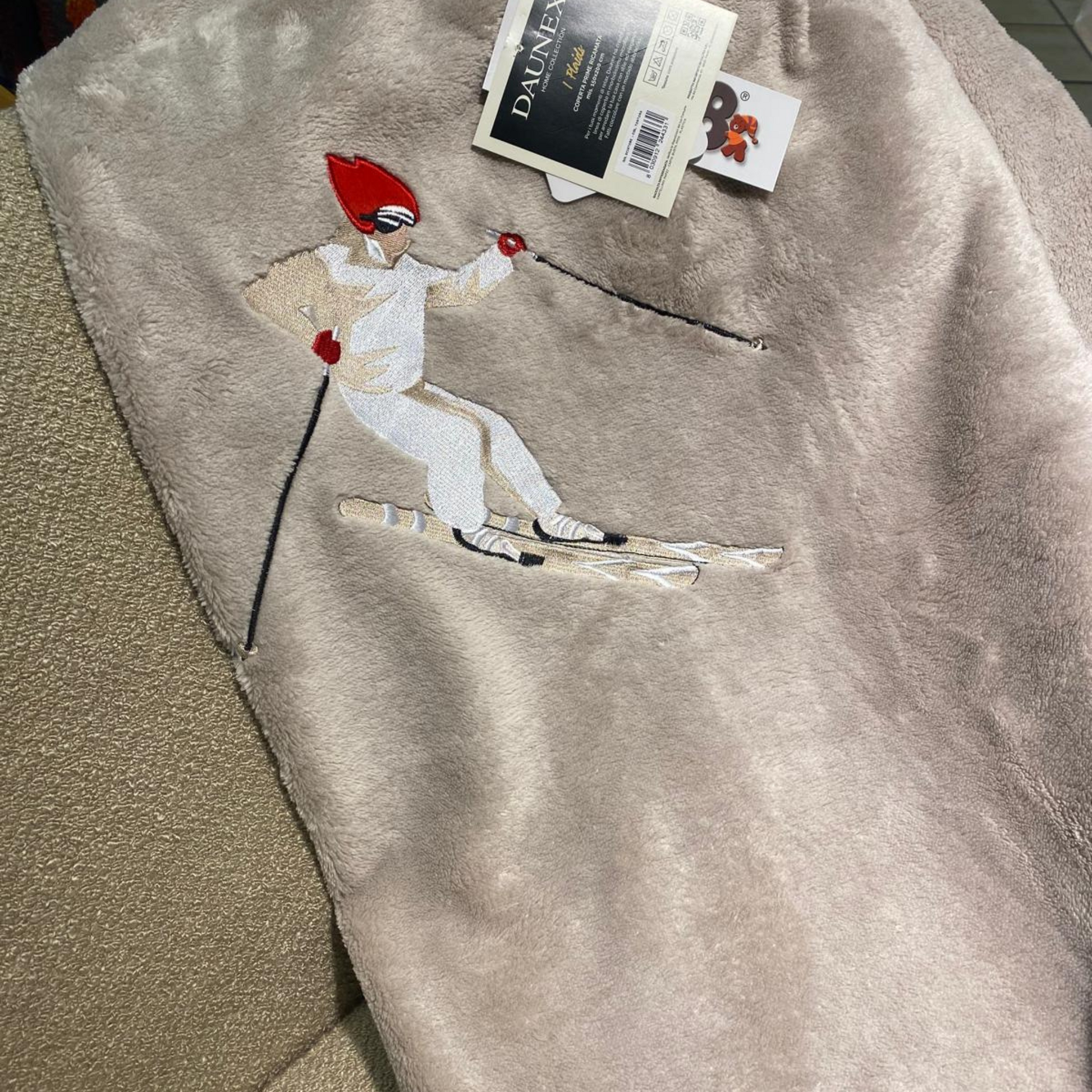 Coperta Prime Ricamata Sciatore in Microfibra Morbidotto – Daunex