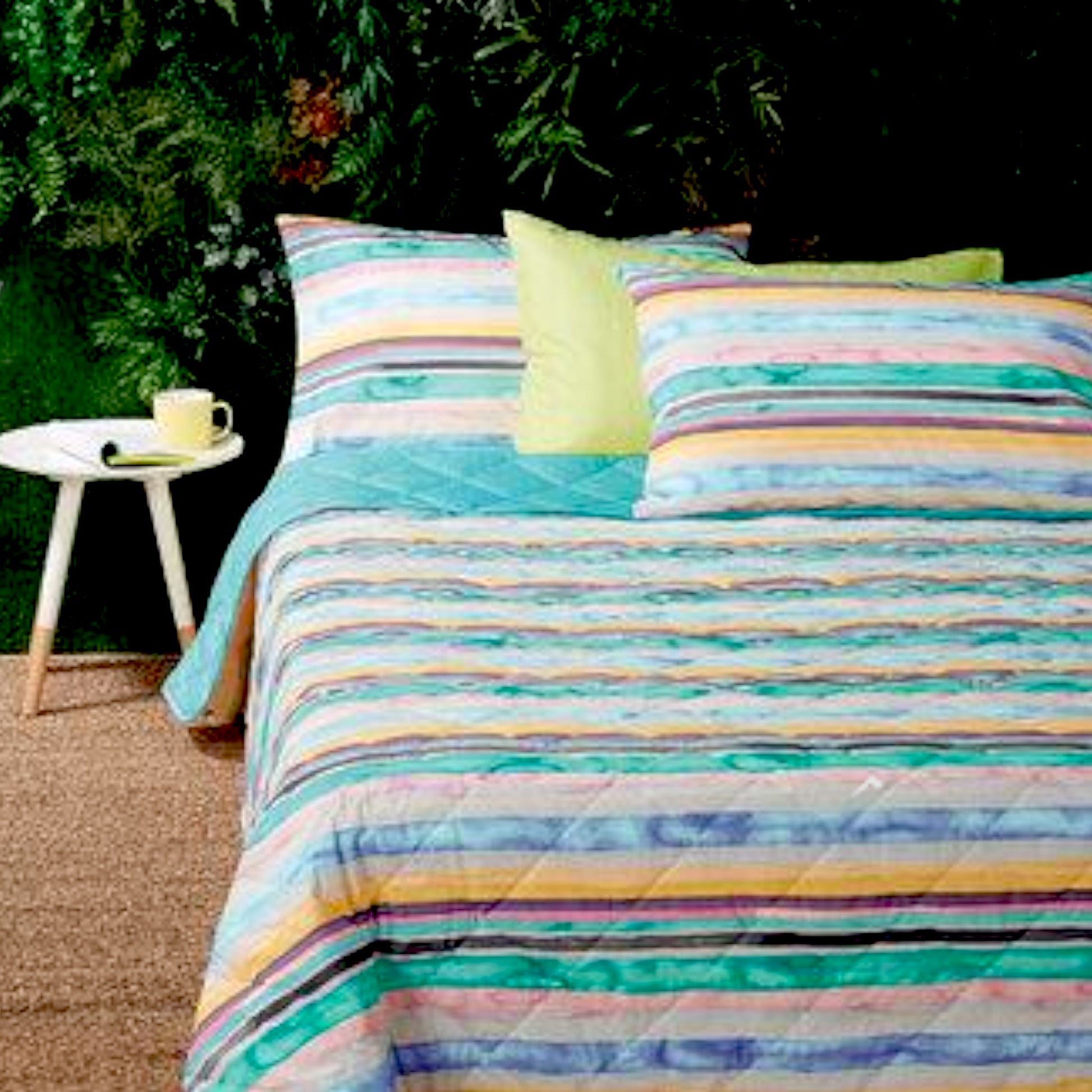 Copriletto trapuntato Band in tela di puro cotone americano della collezione Bassetti che richiama i valori di uno stile di vita all’aria aperta e suggerisce la creazione di un’oasi rilassante e armoniosa all’interno della casa.