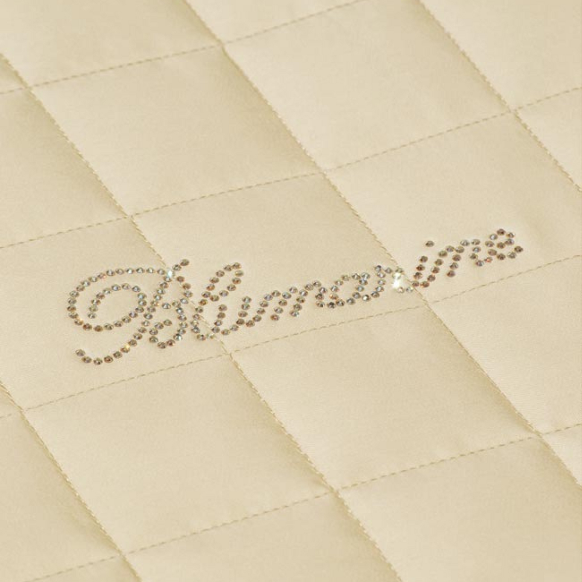 Il tessuto sopra, realizzato al 100% in raso di cotone di alta qualità, offre una superficie setosa al tatto che accarezza delicatamente la pelle, garantendo un comfort eccezionale durante il riposo. Il logo Blumarine, impreziosito da autentici cristalli Swarovski, aggiunge un tocco di brillantezza e glamour al design, conferendo al copriletto un'eleganza senza tempo.