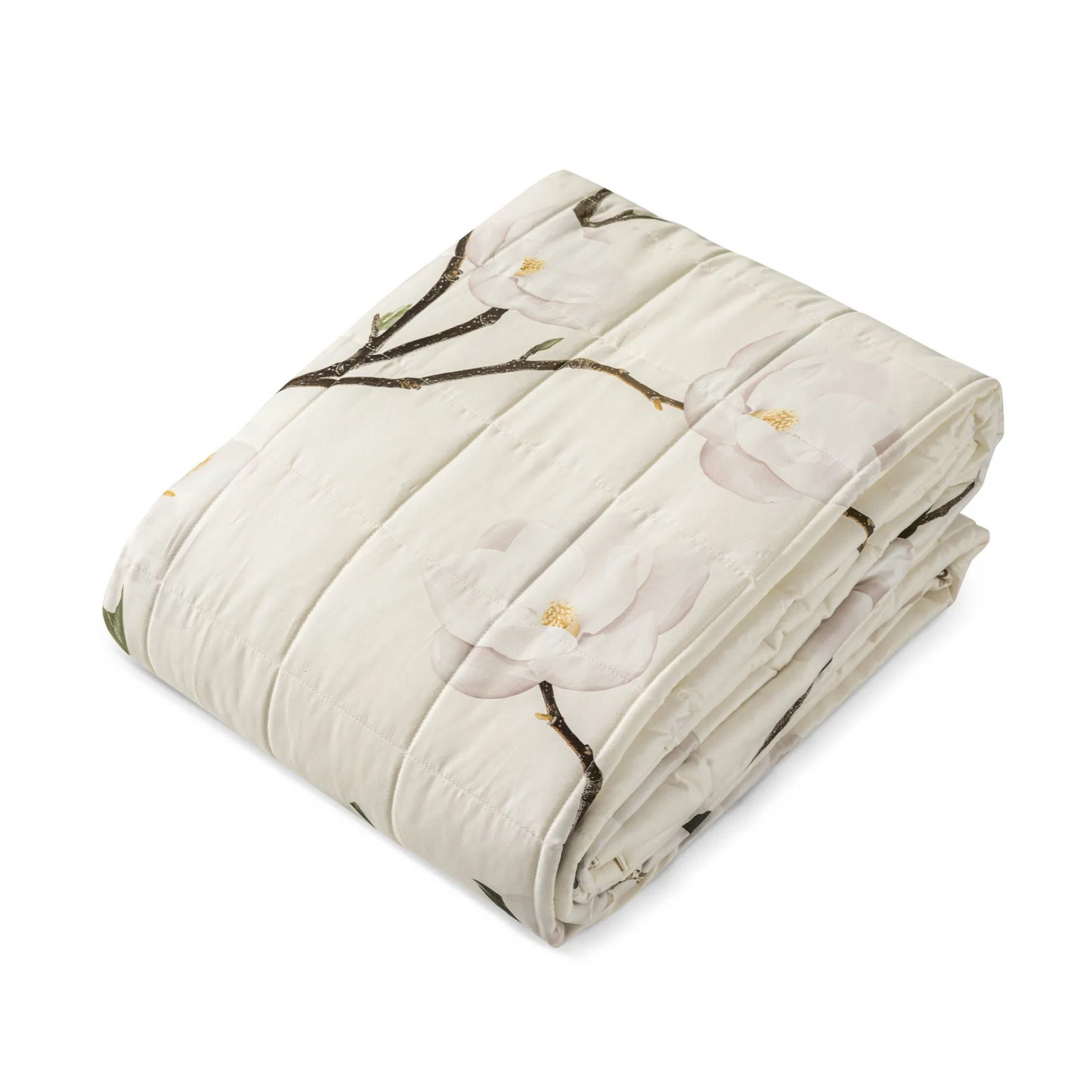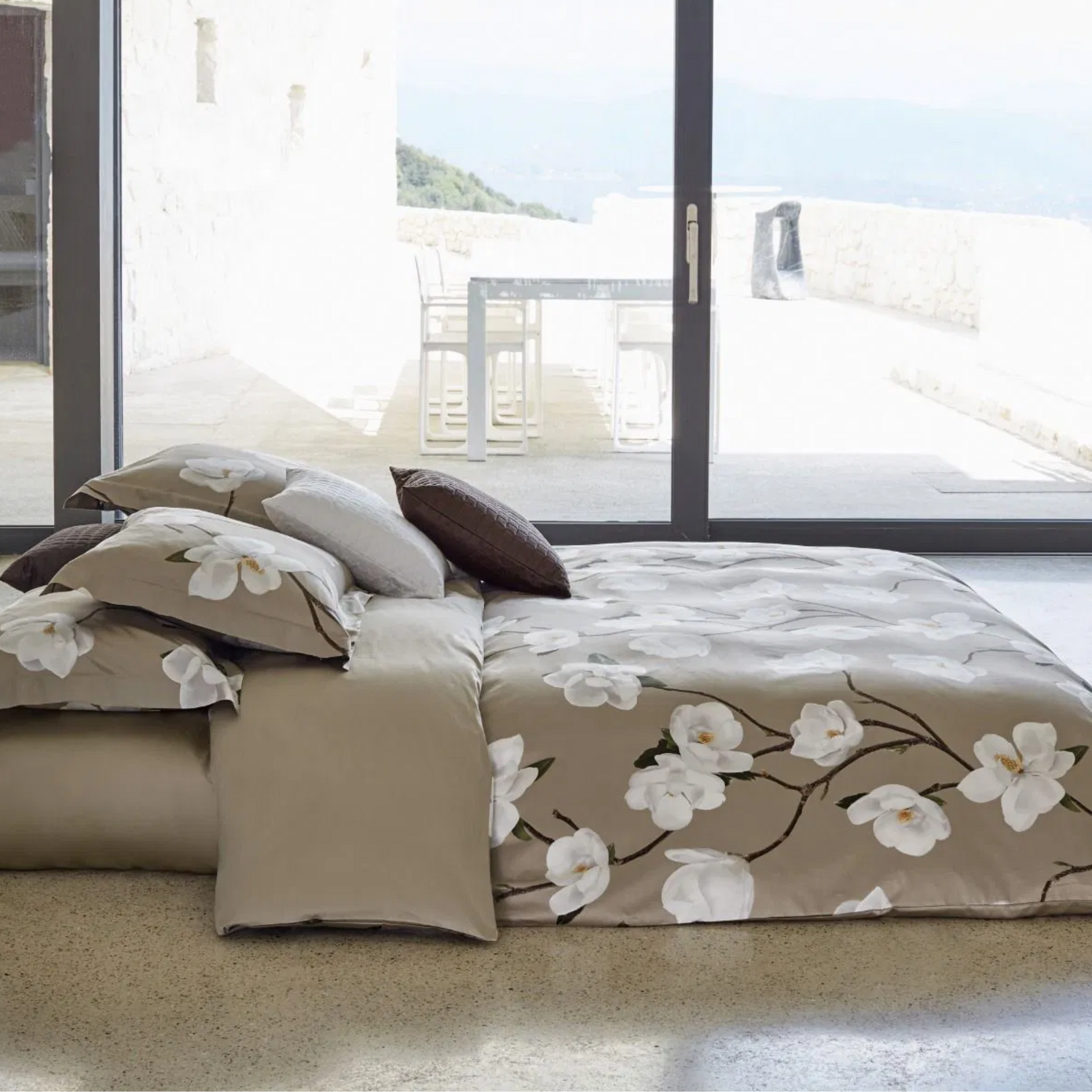 Il copriletto Sanremo firmato Signoria di Firenze è un omaggio alla raffinatezza dei giardini italiani. Il suo disegno celebra la bellezza naturale della Magnolia, con rami sinuosi e fiori delicati che si intrecciano su un prezioso raso di cotone 300 TC. Una creazione che unisce artigianalità italiana, comfort e stile senza tempo.