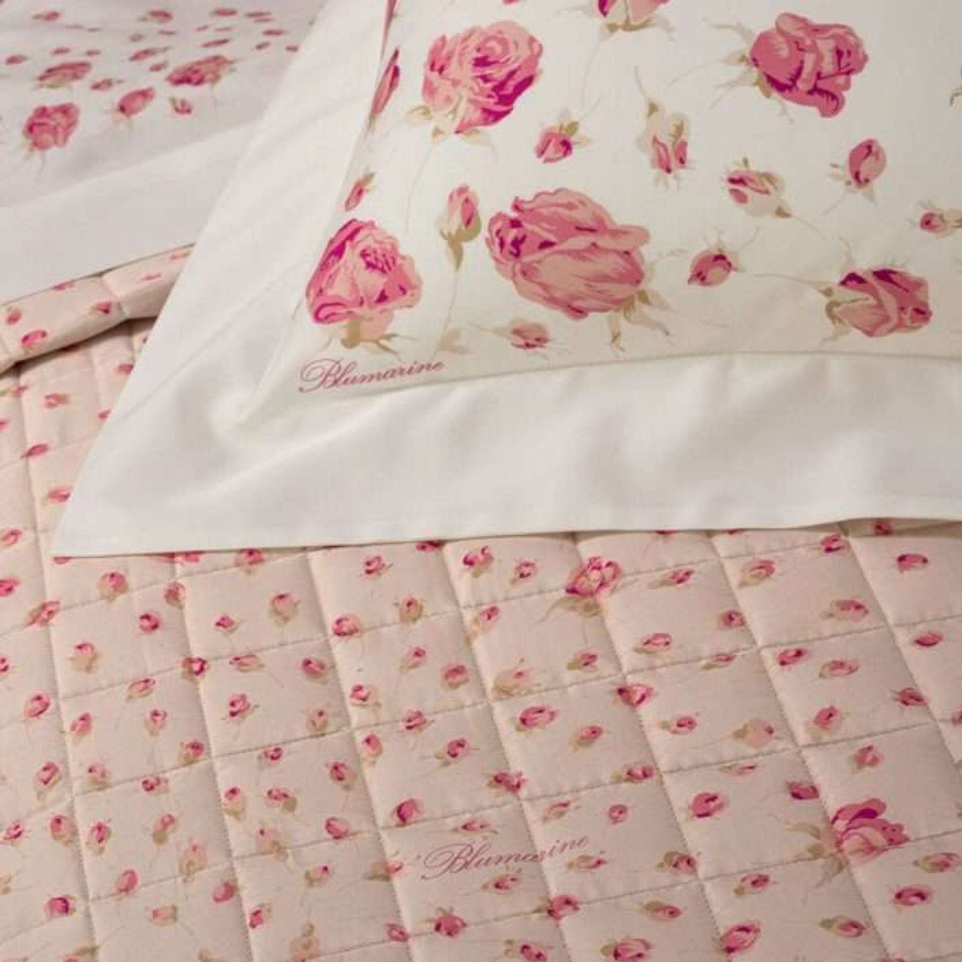 - Design: Trapuntato e con stampa all-over, questo copriletto presenta il logo Blumarine impresso nel tessuto, simbolo di alta qualità e stile senza tempo.