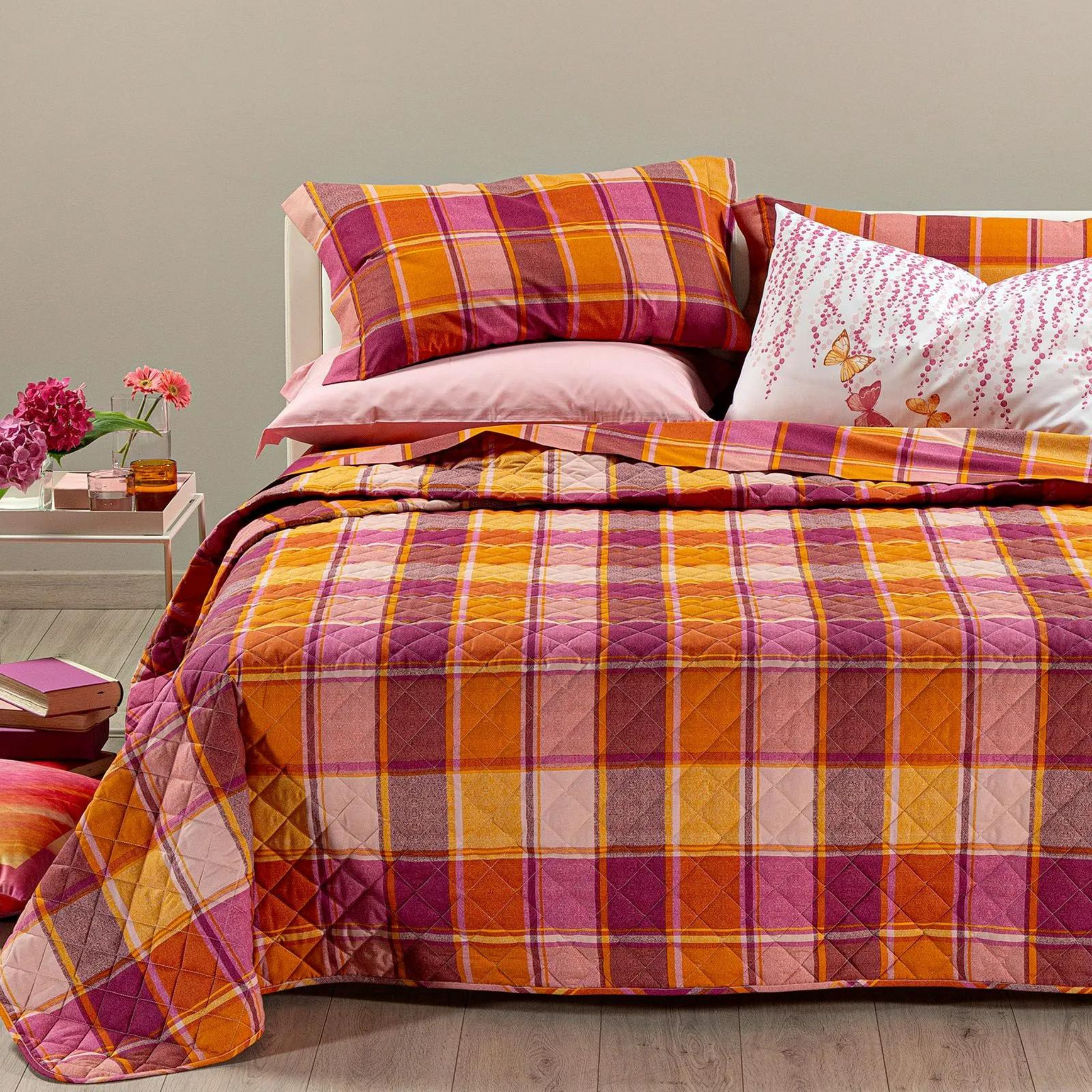 1. Trapuntatura leggera : Con una densità di 80gr/mq , il nostro copriletto trapuntato offre una leggera imbottitura che aggiunge comfort senza appesantire, ideale per le stagioni intermedie e per creare uno strato extra di calore durante l'inverno.