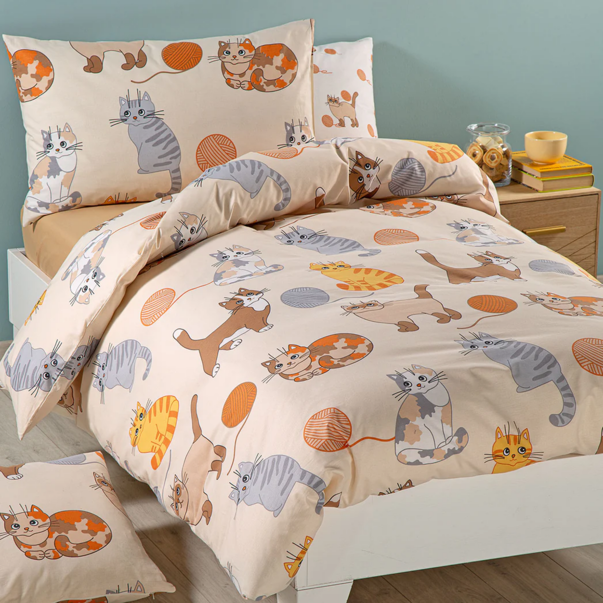 Design dolce e raffinato, con un fondo beige decorato da teneri gattini che giocano