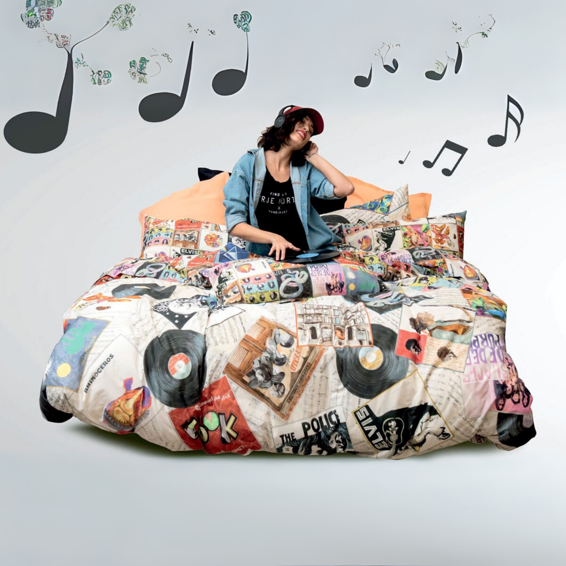 Porta la passione per la musica direttamente in camera da letto con questa raffinata parure in fine serie! Realizzata in morbido percalle di cotone, è impreziosita da una bellissima stampa a tema dischi vintage, perfetta per gli amanti dello stile retrò e del comfort.