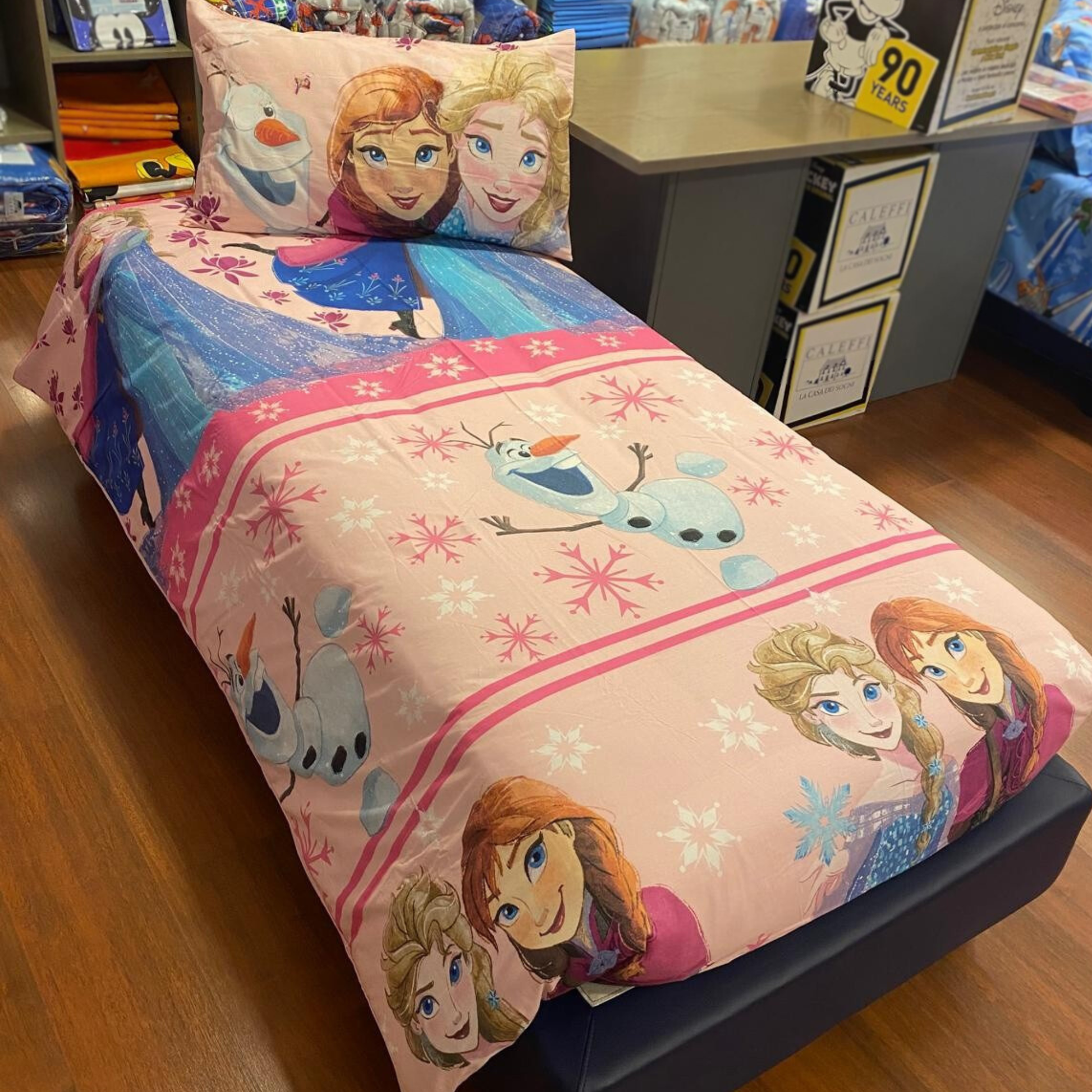 La parure copripiumino Frozen Disney, disponibile da Pedersoli Casa, è pensata per trasformare la cameretta in un mondo da fiaba, dedicato a chi ama le avventure di Elsa, Anna e dei personaggi più amati di Frozen.