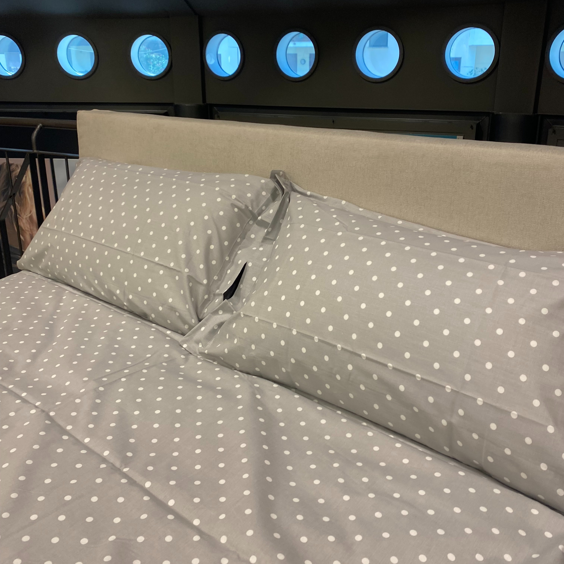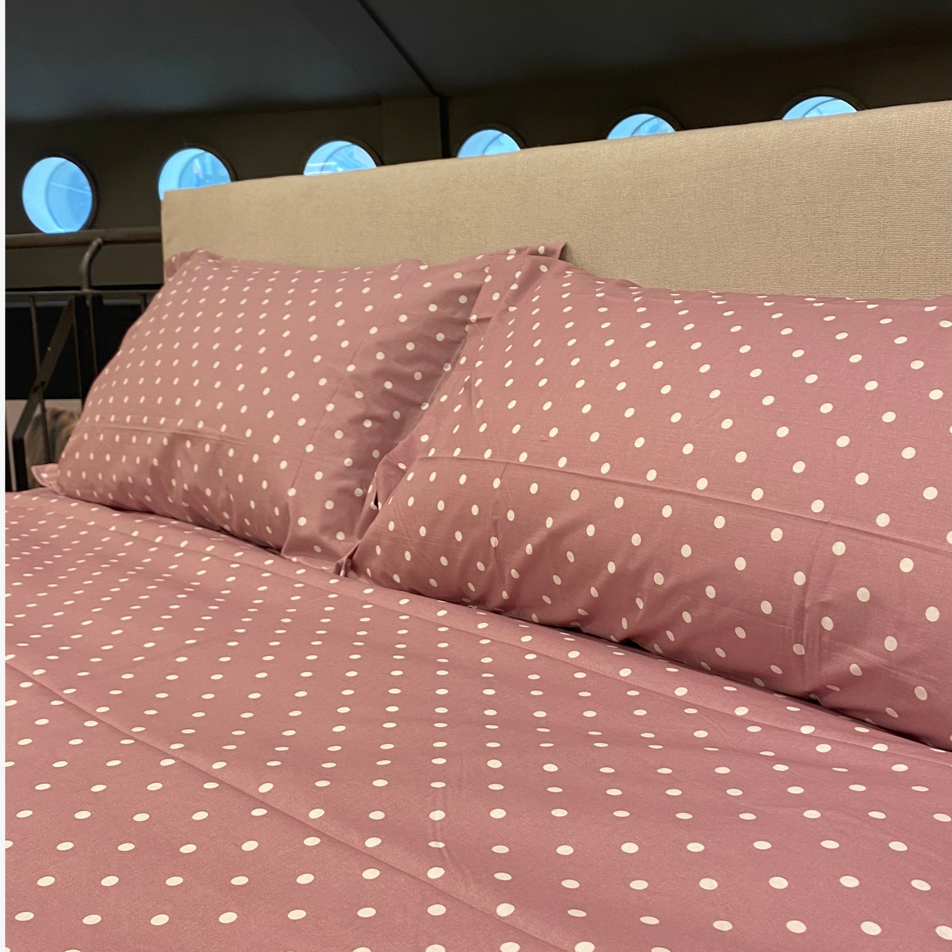 FANTASIA: pois rosa e bianco/grigio e bianco/beige e bianco – un tocco elegante e delicato per la tua camera da letto.