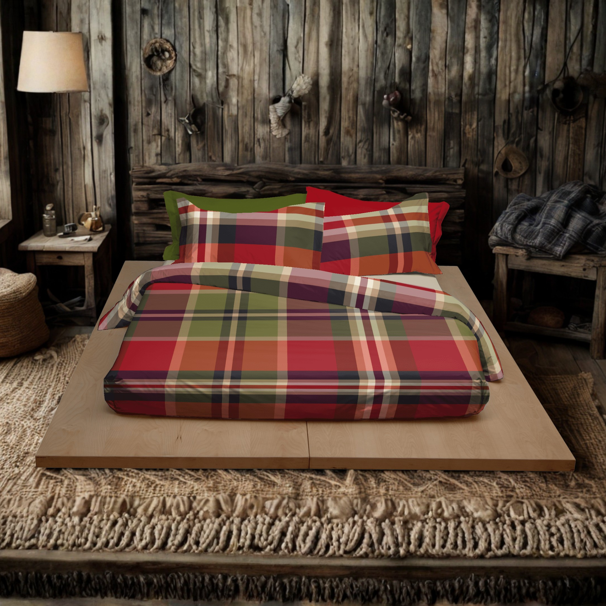 Parure Copripiumino Tobias – Bossi Casa | 100% Cotone Pettinato Tinto Filo | Scozzese Verde e Rosso