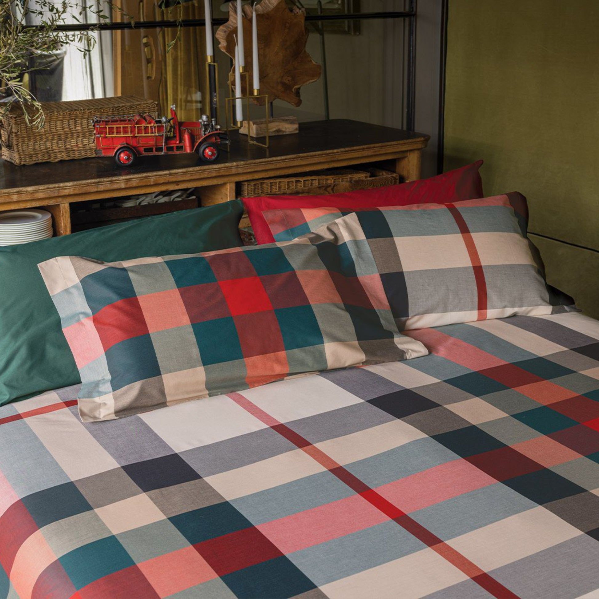 Rinnova la tua camera con la parure di lenzuola Bossi Casa Oslo, un set matrimoniale elegante e versatile, realizzato con materiali di alta qualità. Con un disegno scozzese che si ripete su entrambi i lati, questa parure non ha rovescio, per un aspetto sempre perfetto e simmetrico.