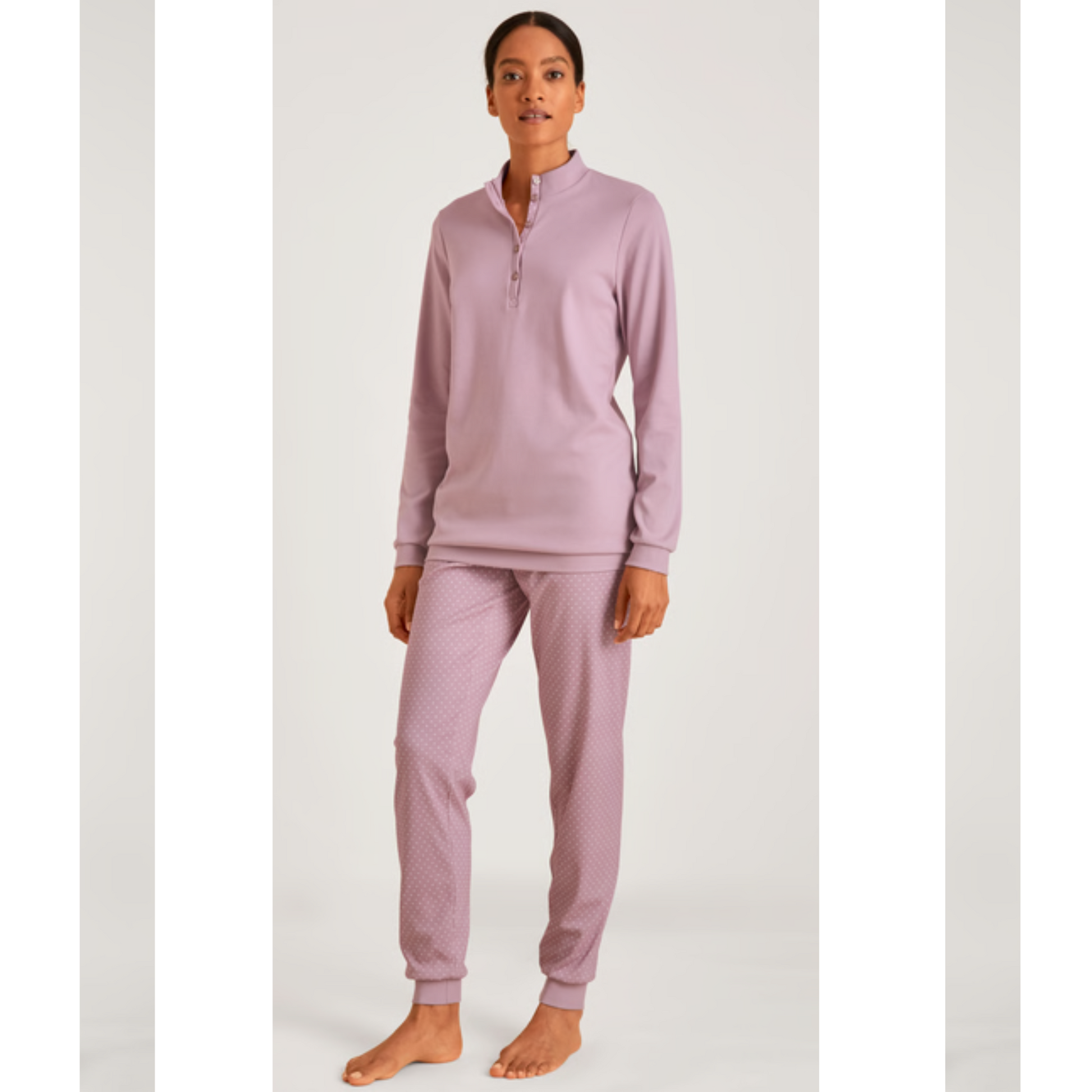 La fantasia a pois non passa mai di moda e il caldo cotone è immancabile nelle notti fredde. Il pigiama con polsini MIDNIGHT DREAMS di CALIDA è perfetto sempre. Dettagli moderni come il collo alla coreana con abbottonatura o la meravigliosa tonalità malva conferiscono a questo modello invernale un look strepitoso, mentre gli ampi polsini su maglia e pantalone donano una sensazione di comfort impareggiabile.