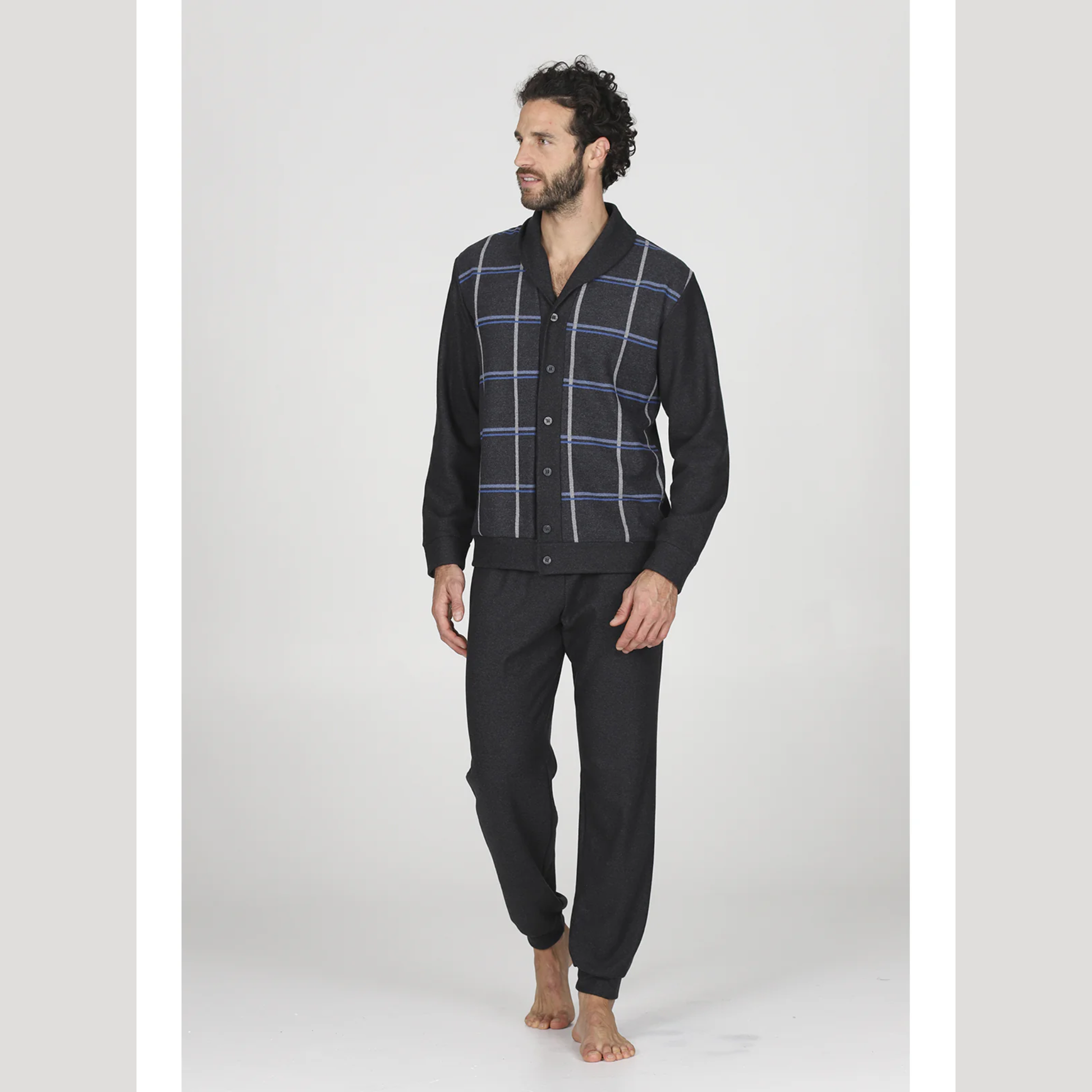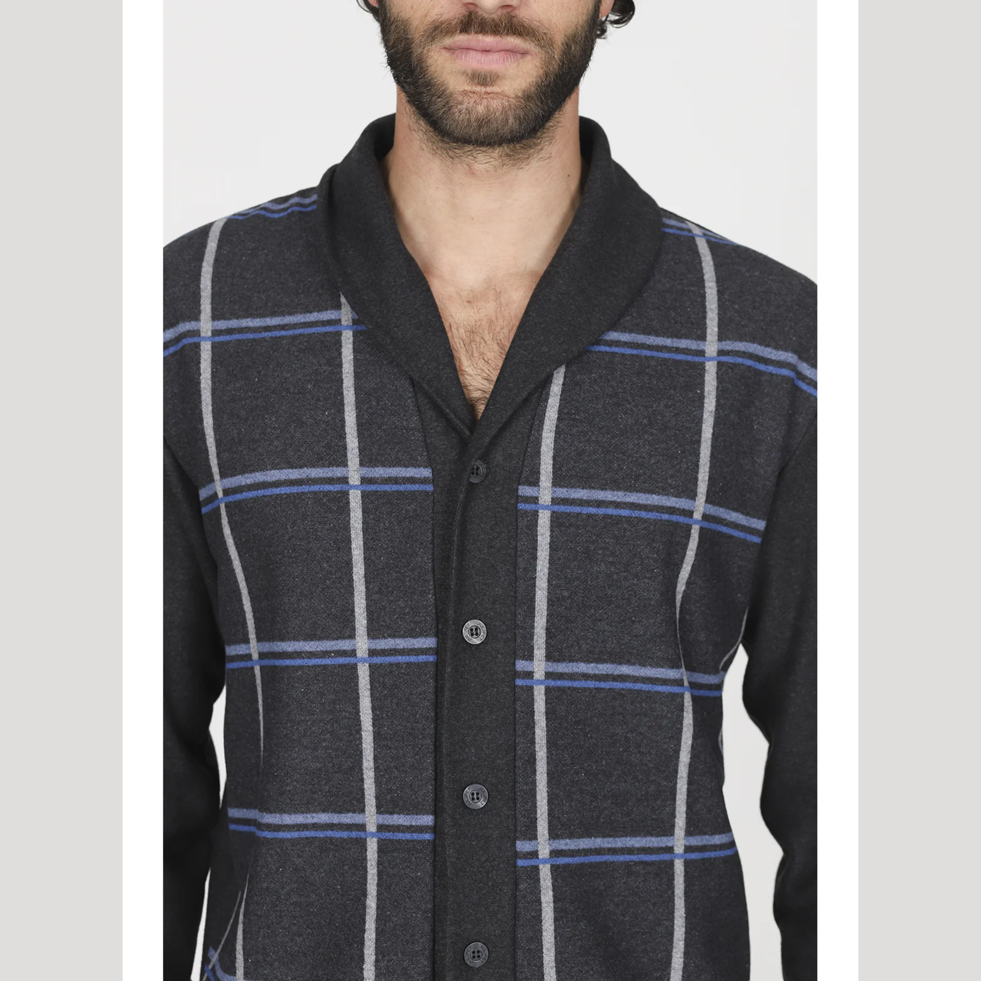 Eleganza e comfort si fondono in questo pigiama cardigan da uomo Julipet, pensato per chi desidera uno stile curato anche nei momenti di relax. Realizzato in jacquard Ecolife, un tessuto caldo e confortevole in maglieria di fantasia, è ideale sia per la notte sia per il vestire in casa.