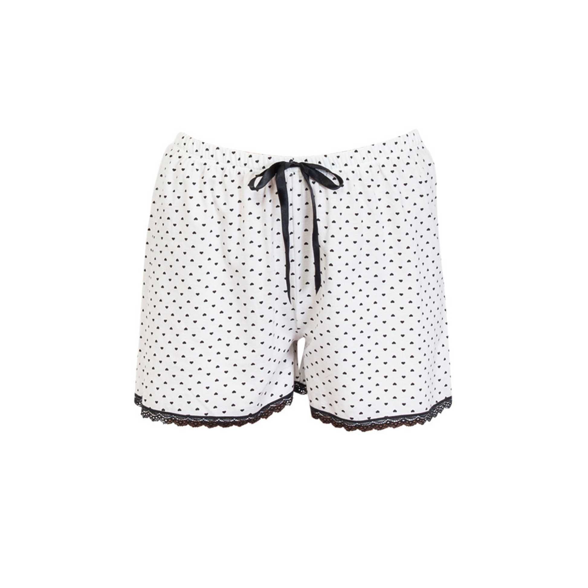 Scegli il tuo colore preferito e immergiti nel comfort e nella grazia della nostra collezione di pigiami. Acquista oggi stesso il tuo Pigiama Top con Spallina Sottile e Pantaloncino e preparati a sognare dolcemente avvolto nella morbidezza e nel romanticismo dei cuoricini stampati.
