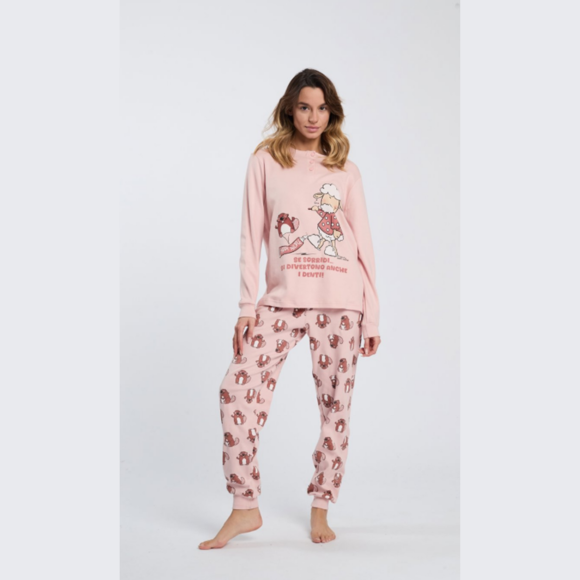 Scopri il Pigiama Serafino 6745 Soridi della nuova collezione Autunno/Inverno 2025-2026, il compagno ideale per le tue serate di relax. Realizzato in 100% cotone morbido e traspirante, regala una sensazione di comfort naturale sulla pelle, perfetta per affrontare le notti più fredde con leggerezza e calore.