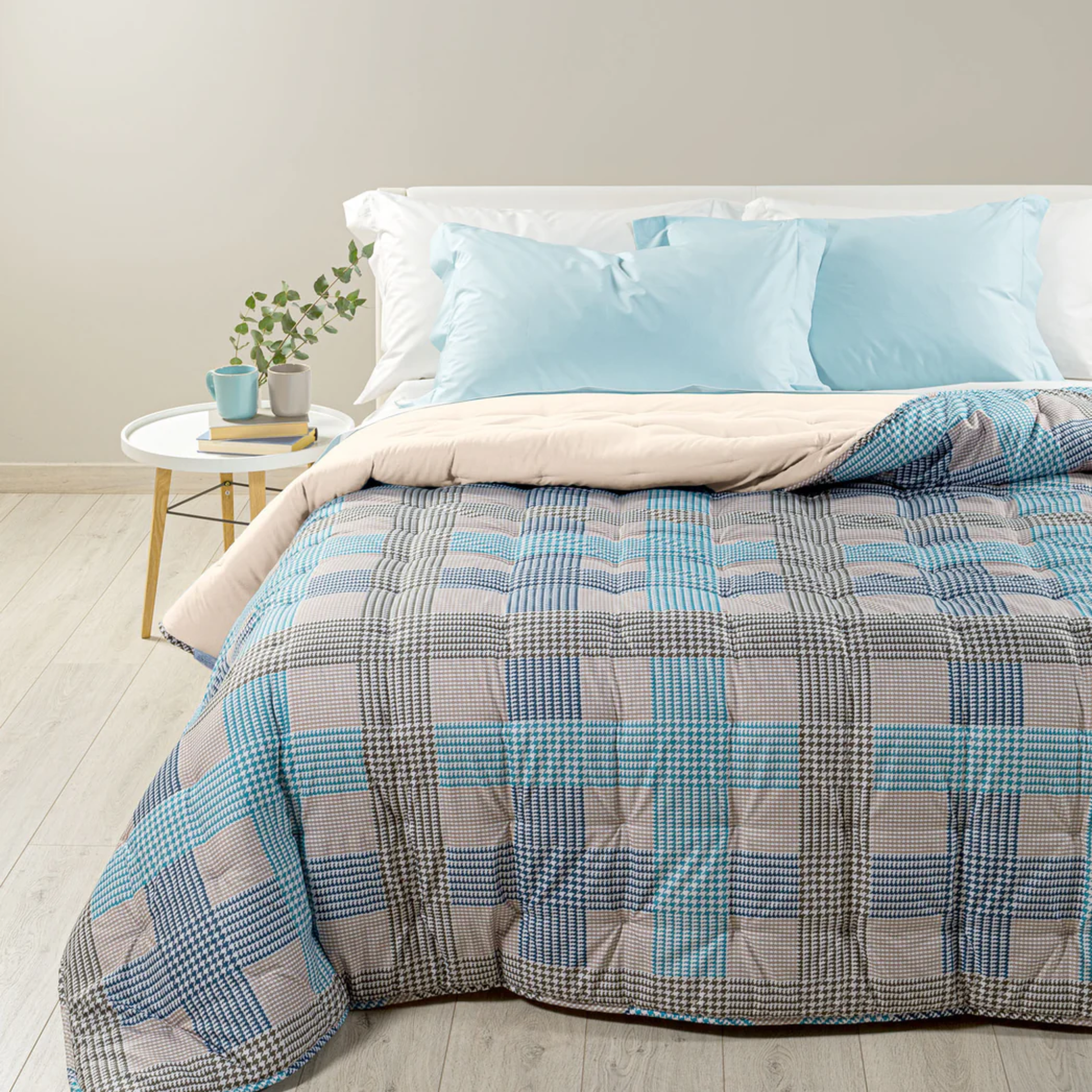 Scopri il piacere di dormire avvolto nel comfort della Trapunta Calduccia British di Caleffi, realizzata in morbida microfibra di alta qualità per offrirti calore, leggerezza e resistenza ai lavaggi. La sua raffinata fantasia tweed a quadri aggiunge un tocco elegante e accogliente alla tua camera da letto.