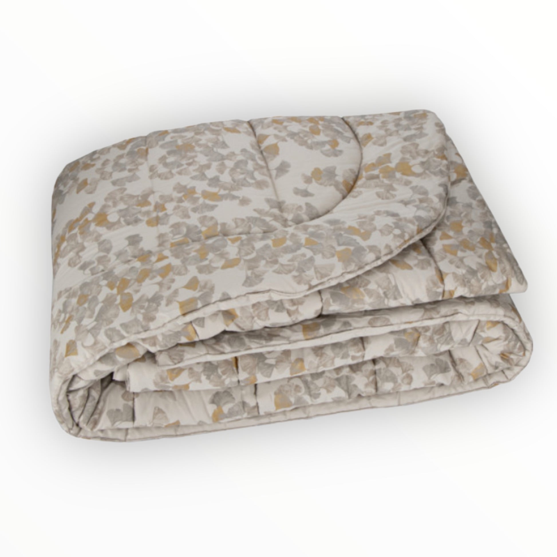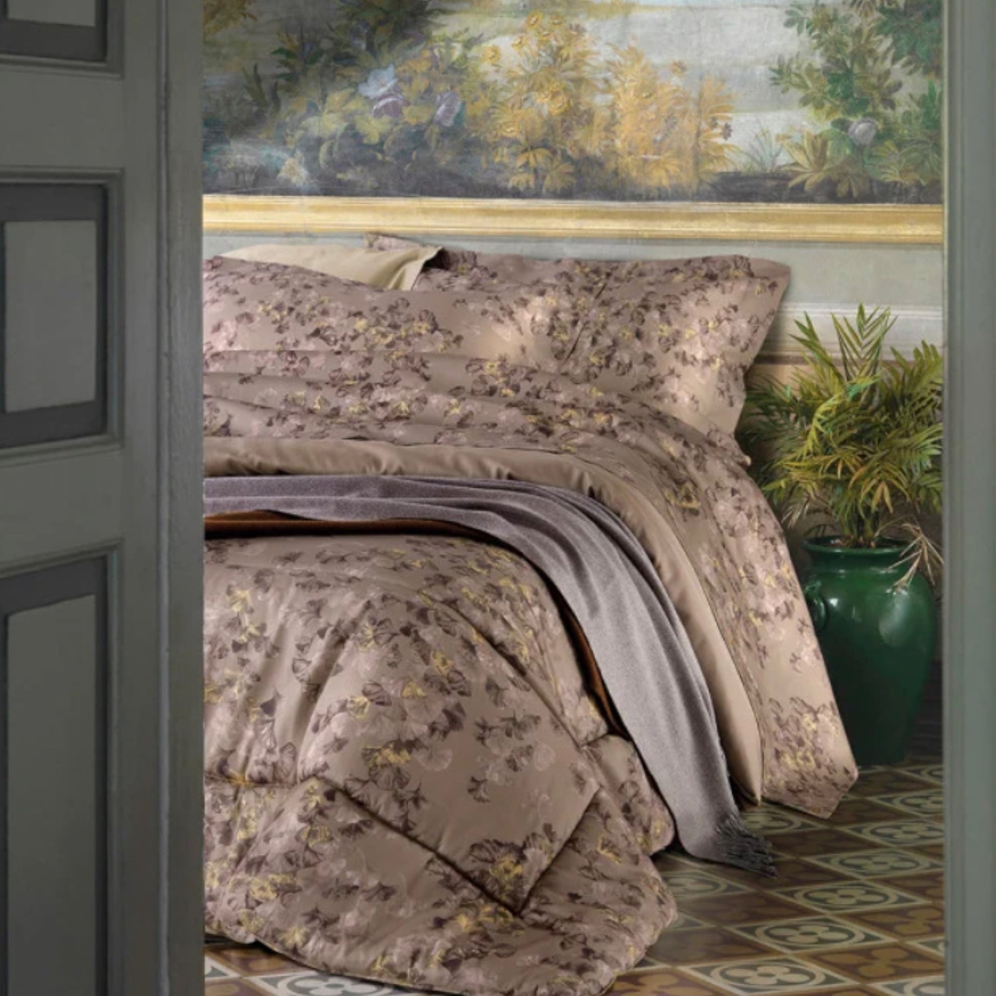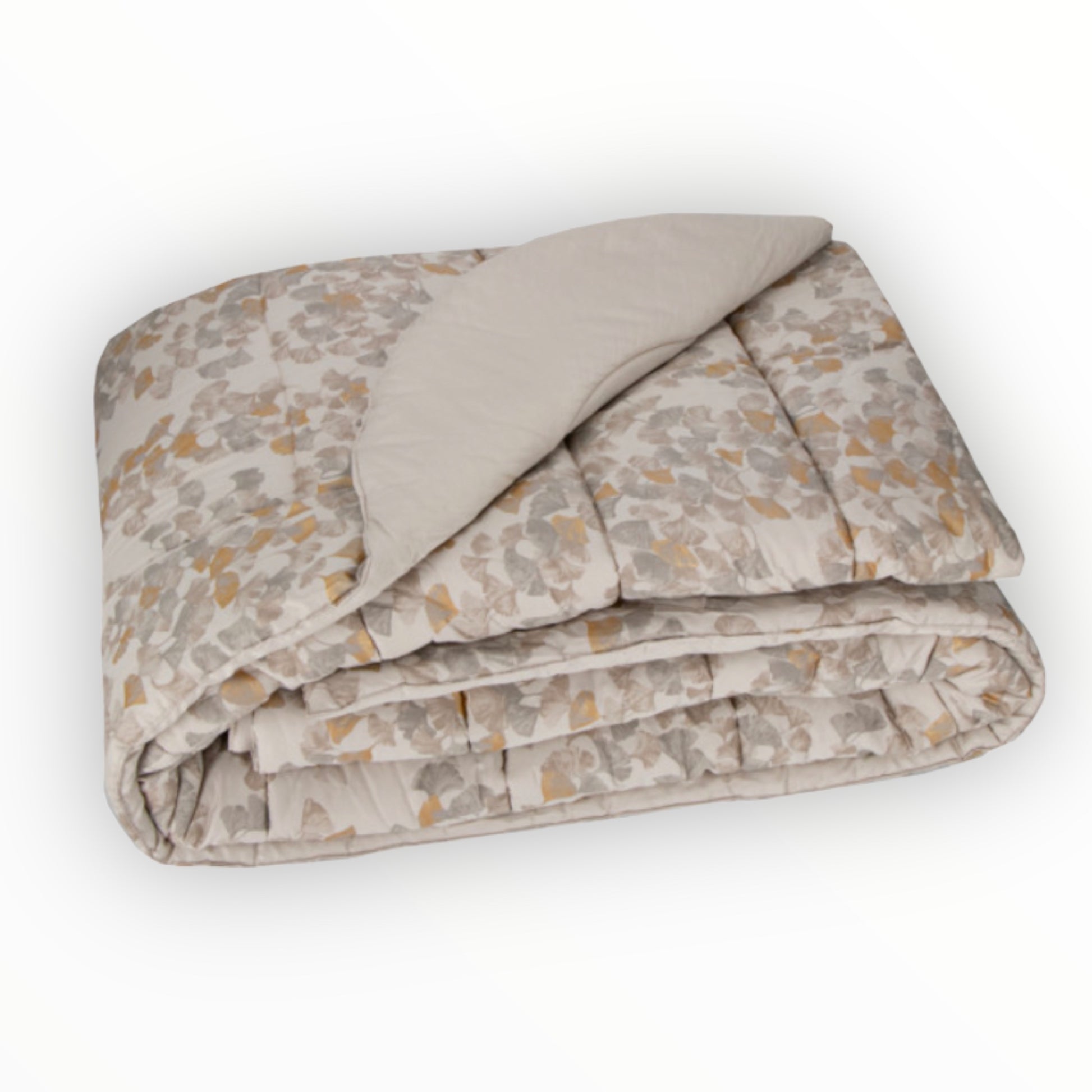 La suggestione orientale delle foglie di ginkgo con Balade, la trapunta matrimoniale della Collezione Impero di Somma 1867. In raso di puro cotone mercerizzato stampato 120 fili/cmq, con fronte stampato e retro in tinta unita, è realizzata a capo e rifinita con ribattitura perimetrale. Imbottitura in morbida fibra anallergica di poliestere, 320g/mq. Coordinabile con la teleria sfusa, in raso, Jewel. La scelta dei colori e delle rifiniture, la preziosità della texture unita alla carezza del raso determinano la qualità superlativa di prodotti di biancheria per la casa unici firmati Somma 1867. Prodotto interamente in Italia e certificato Oeko-tex.